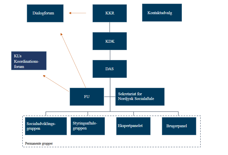 Sekretariatet refererer overordnet til Den Administrative Styregruppe, der udgøres af de 11 socialdirektører fra de 11 nordjyske kommuner. Sekretariatets forankring ligger hos Forretningsudvalget. Formanden for forretningsudvalget er sekretariatets daglige sparringspartner. Forretningsudvalget inddrages i det overordnede strategiske arbejde.